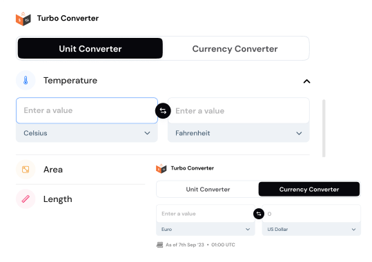 Turbo Converter is your key to speedy metric and currency conversions right in your browser. Ideal for students and professionals, it simplifies calculations and provides accurate results. Plus, you won't have to keep searching for an online converter - the tools you need are always at your fingertips!